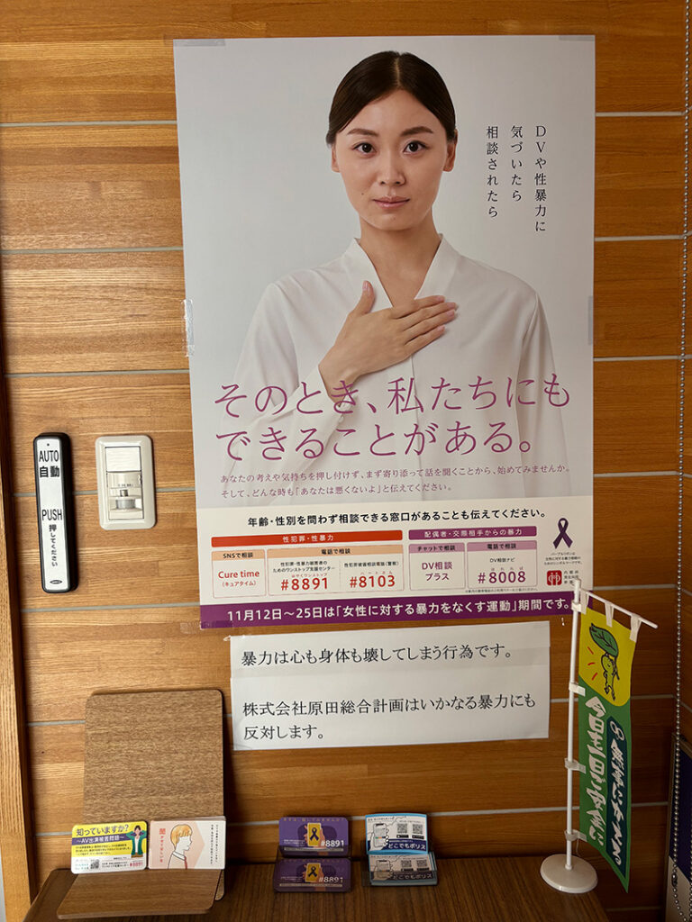 暴力は心も身体も壊してしまう行為です。株式会社原田総合計画はいかなる暴力にも反対します。